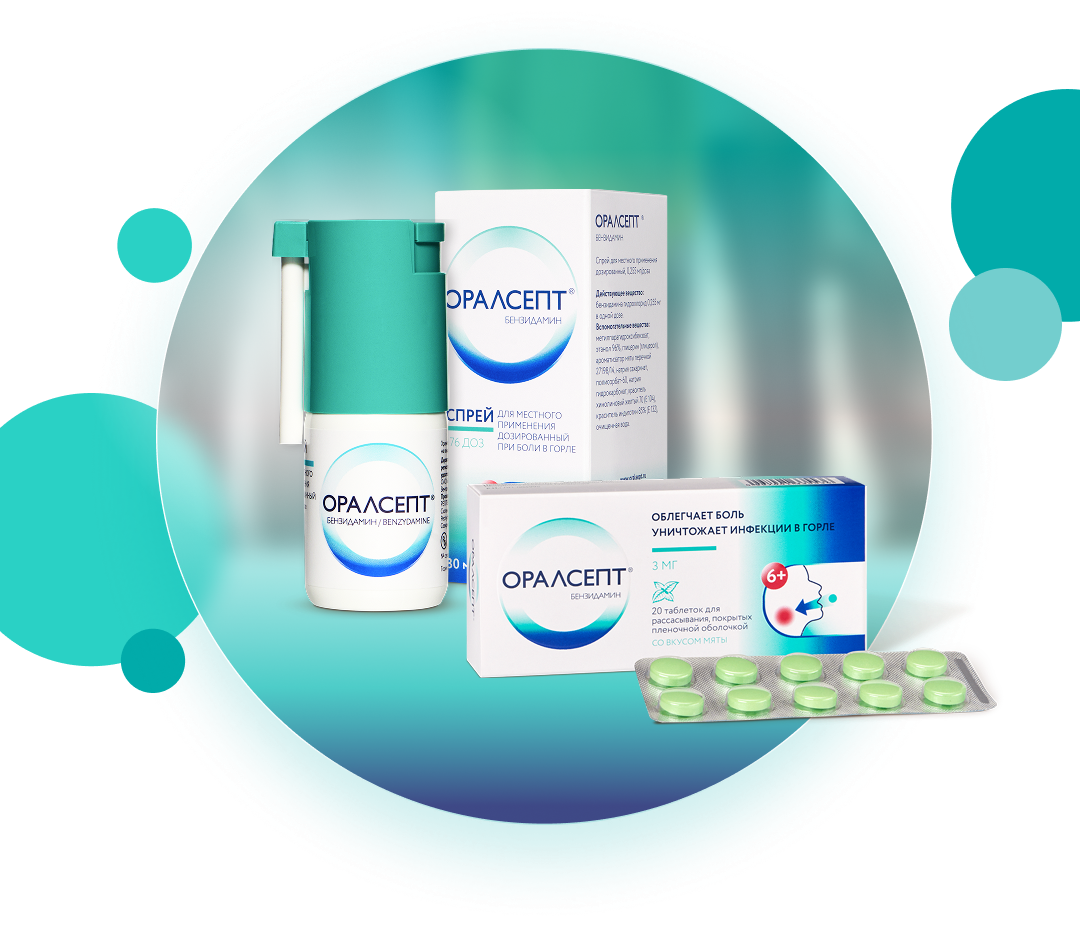 ОРАЛСЕПТ® действует как на причину заболевания, так и на симптомы